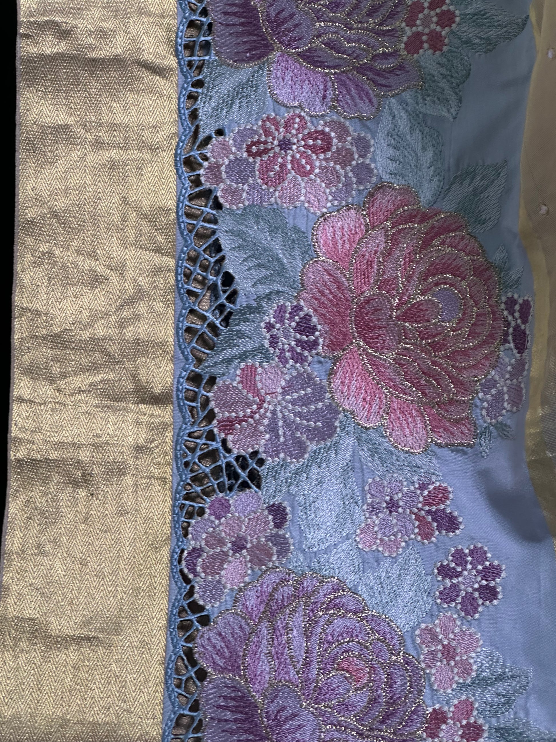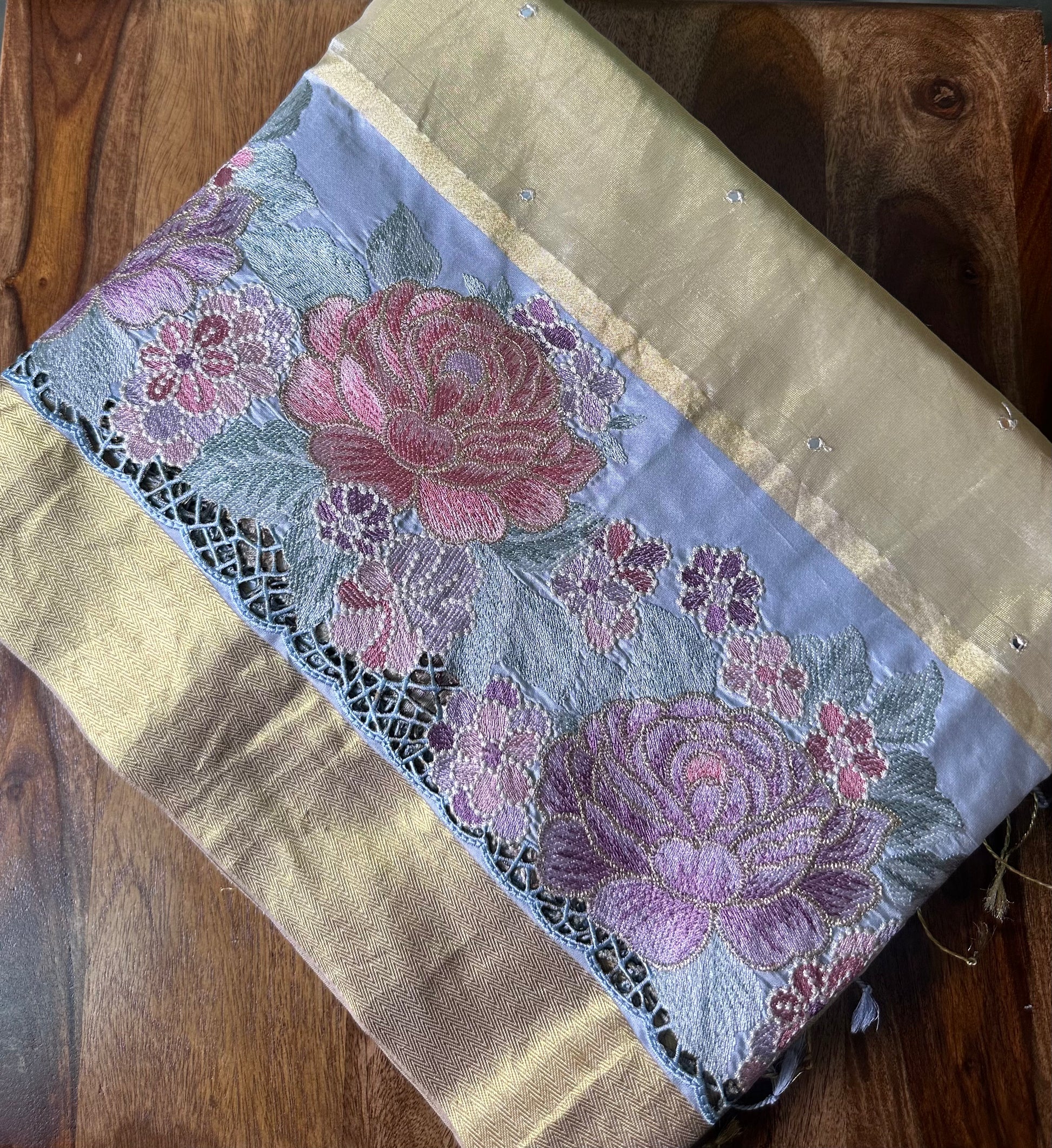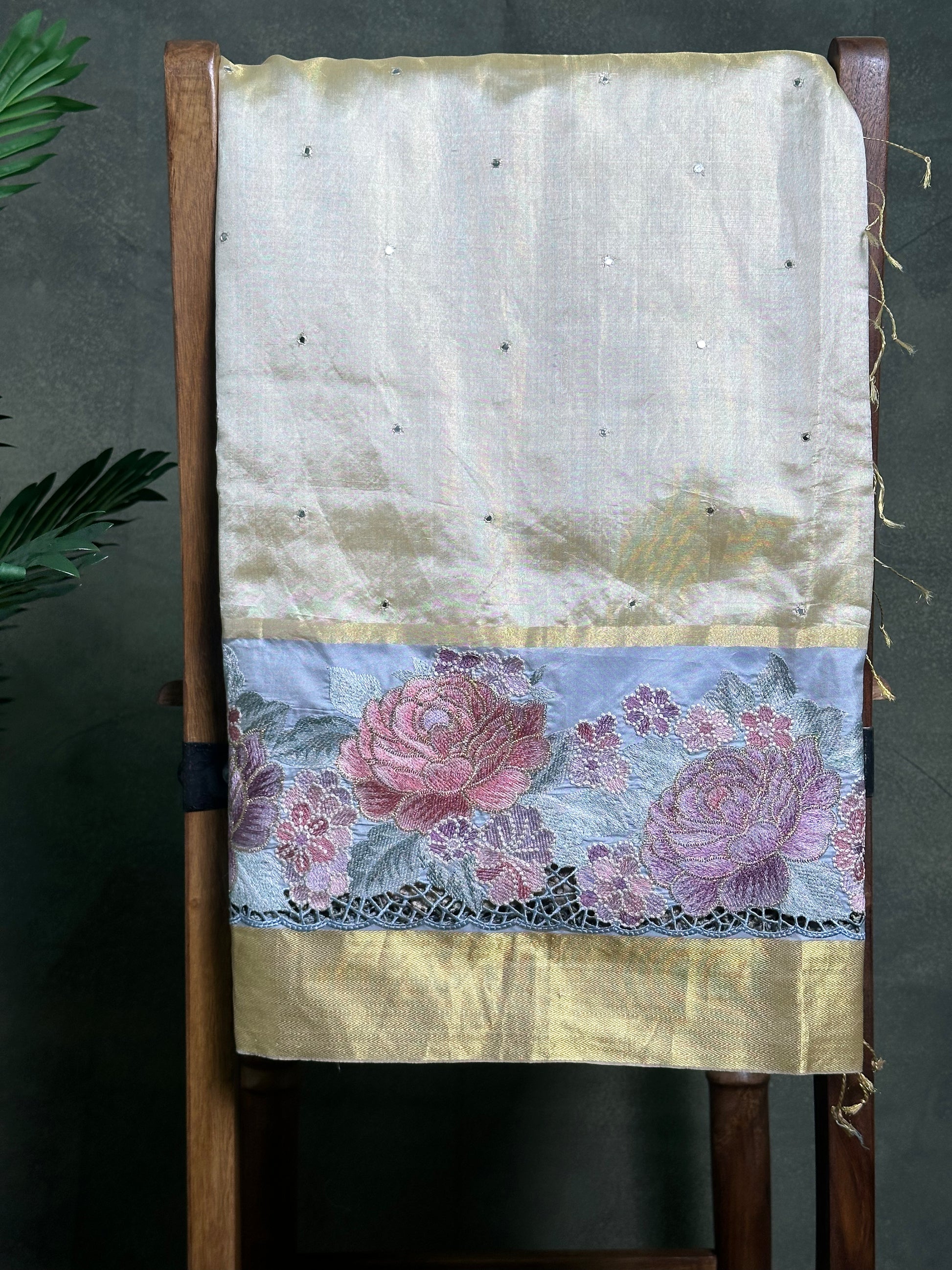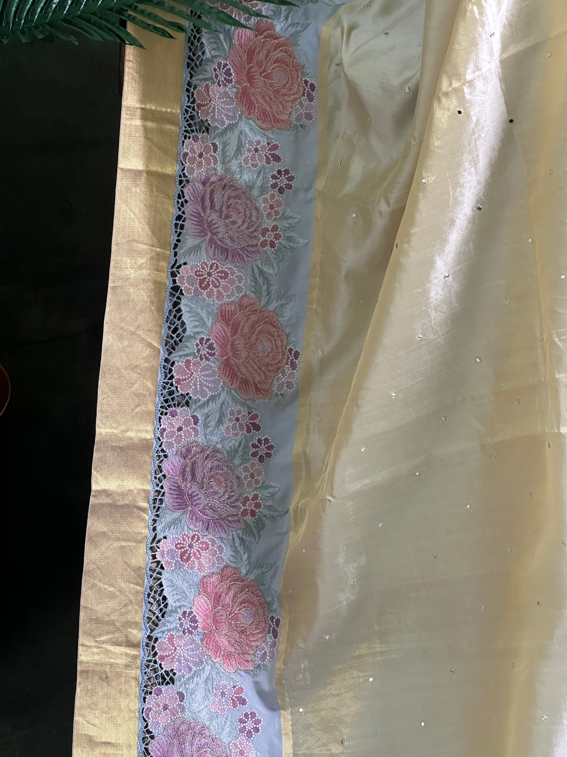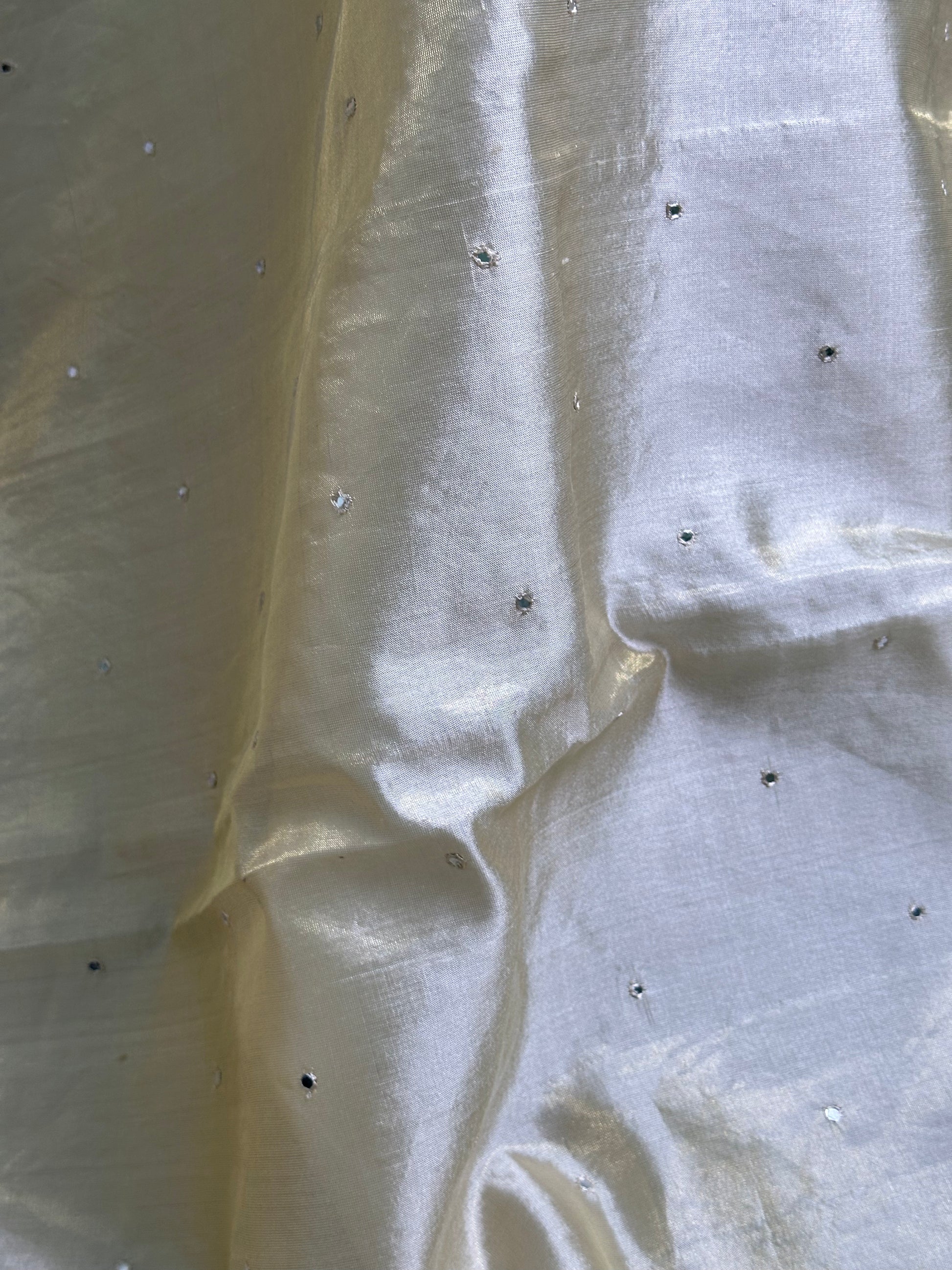 Half White Kanchi Cutwork Embroidery Saree with Allover mirror work