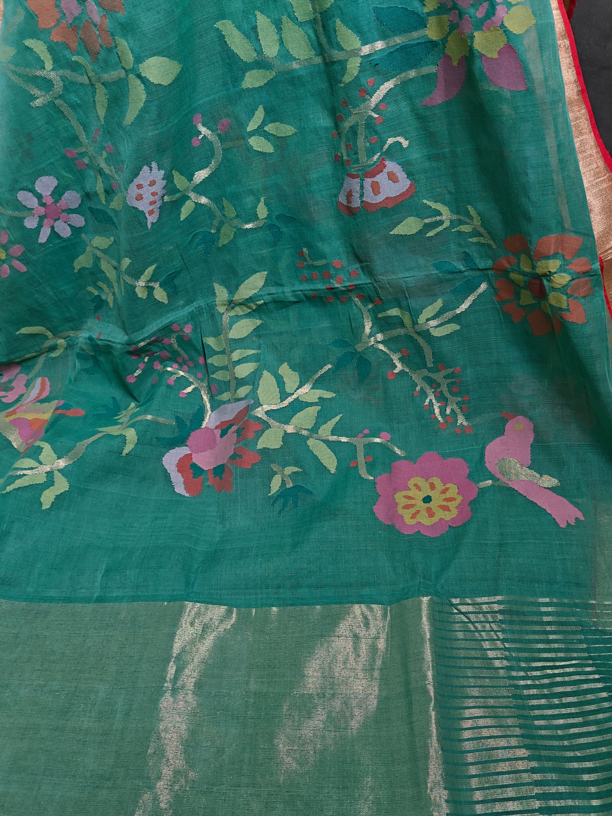 All over floral jamdani jaal, offering a delicate and traditional pattern.